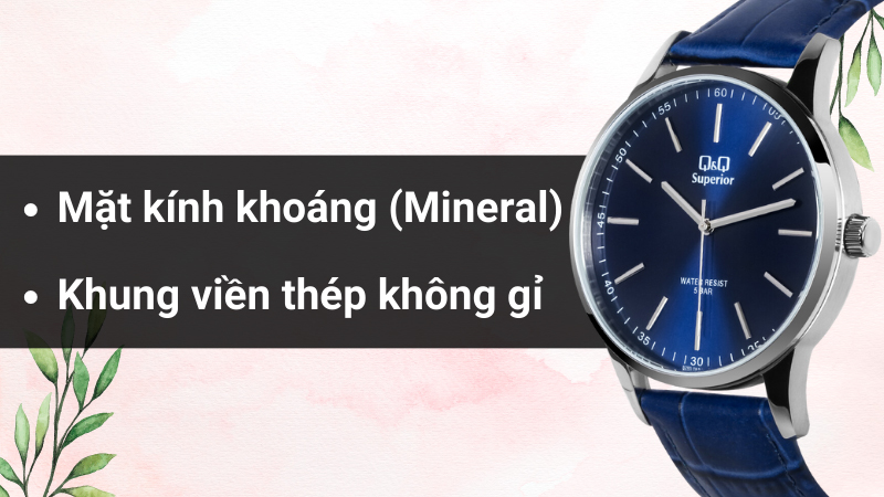- Khung viền được chế tác từ thép không gỉ chống oxy hóa tốt, bảo vệ an toàn cho các chi tiết bên trong đồng hồ. Dây đeo làm từ da mềm mại, nhẹ nhàng, cho cảm giác thoải mái