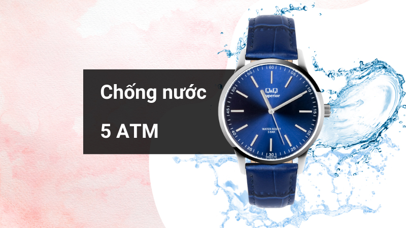 - Hệ số chống nước là 5 ATM, an tâm sử dụng trong lúc tắm, dưới trời mưa và rửa tay nhưng lưu ý, không mang theo khi tham gia bơi, lặn