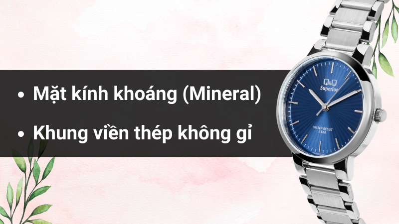 - Khung viền và dây đeo đều được gia công từ thép không gỉ có ưu điểm chống oxy hóa, chịu lực tốt và che phủ hiệu quả các vết trầy xước sau khi đánh bóng