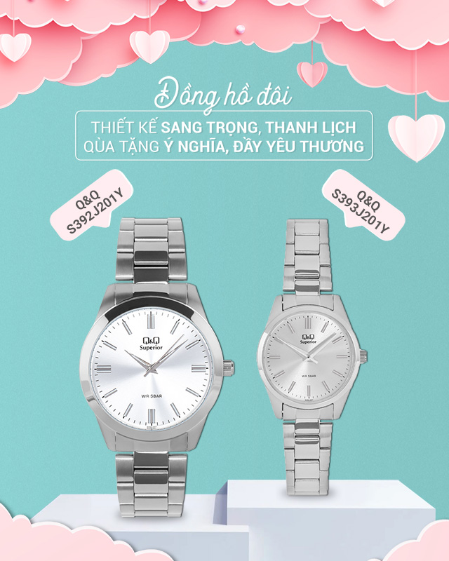 - Mẫu đồng hồ đôi mang thương hiệu đồng hồ Q&Q đến từ Nhật Bản, uy tín và chất lượng tuyệt hảo