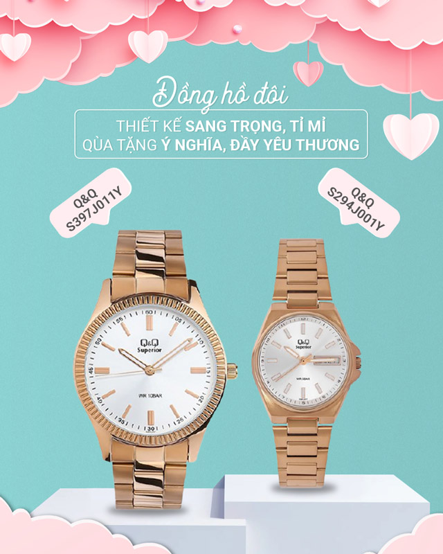 - Mẫu đồng hồ đôi mang thương hiệu đồng hồ Q&Q đến từ Nhật Bản, uy tín và chất lượng tuyệt hảo