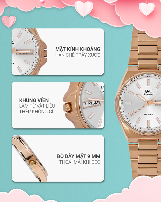 - Sau hơn 40 năm thành lập, đồng hồ Q&Q đã được người dân ở hơn 120 quốc gia mua và yêu thích.