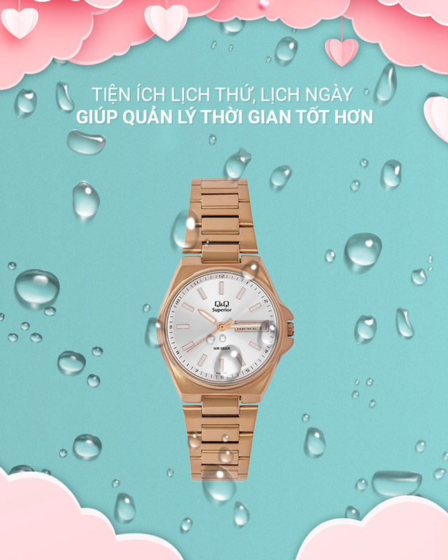 - Chống nước 5 ATM ở đồng hồ nữ, yên tâm đeo khi đi mưa, rửa tay hay tắm, không mang khi bơi, lặn. Ngoài ra còn trang bị thêm mặt phụ thứ, ngày hỗ trợ quản lý thời gian dễ dàng hơn