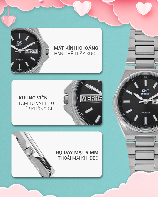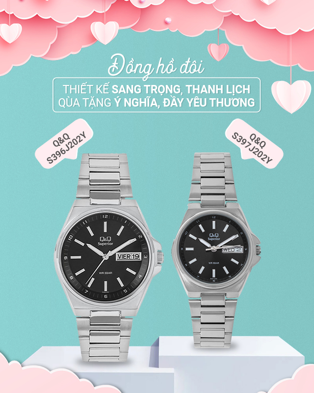 - Mẫu đồng hồ đôi mang thương hiệu đồng hồ Q&Q đến từ Nhật Bản, uy tín và chất lượng tuyệt hảo