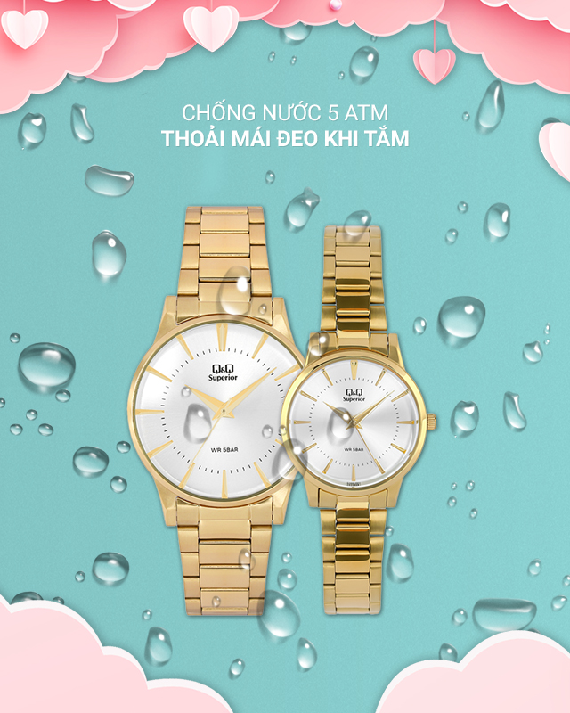 - Cặp đồng hồ có độ chống nước 5 ATM, yên tâm đeo khi đi mưa, rửa tay hay tắm, không mang khi bơi, lặn