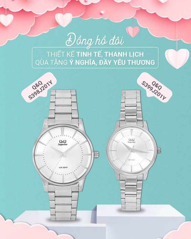 - Mẫu đồng hồ đôi mang thương hiệu đồng hồ Q&Q đến từ Nhật Bản, uy tín và chất lượng tuyệt hảo