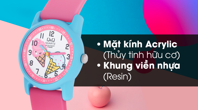 Đồng hồ trẻ em Q&Q VR41J007Y có mặt kính trong suốt, khung viền nhẹ nhàng