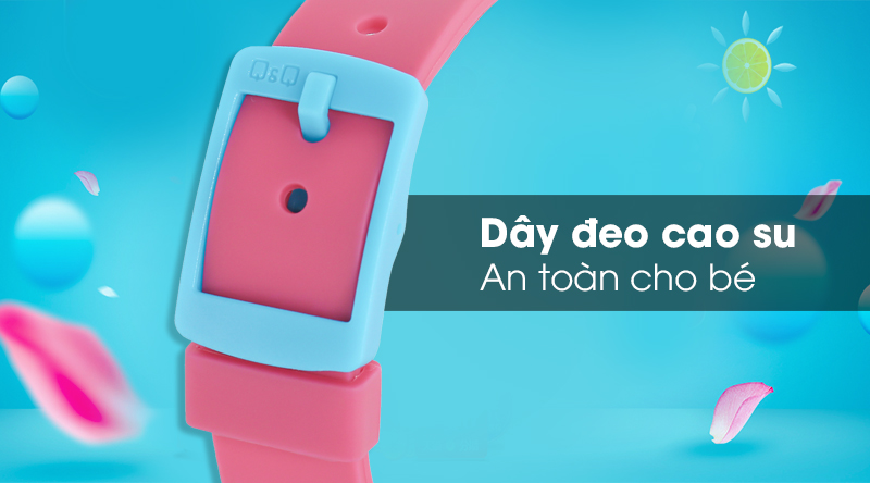 Dây đeo của mẫu đồng hồ Q&Q trẻ em này có độ bền cao, không thấm nước, thiết kế đục lỗ phù hợp với nhiều kích cỡ cổ tay
