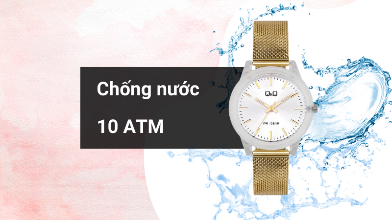 - Khả năng chống nước tới 10 ATM giúp bạn thoải mái đeo chiếc đồng hồ nữ khi bơi, tắm hay tham gia các hoạt động thể thao dưới nước, không mang khi lặn