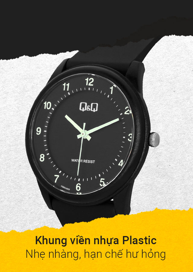 Đồng hồ Nam/Nữ Q&Q VS60J002Y có khung viền nhựa PlasticĐồng hồ Nam/Nữ Q&Q VS60J002Y có mặt kính thủy tinh hữu cơ