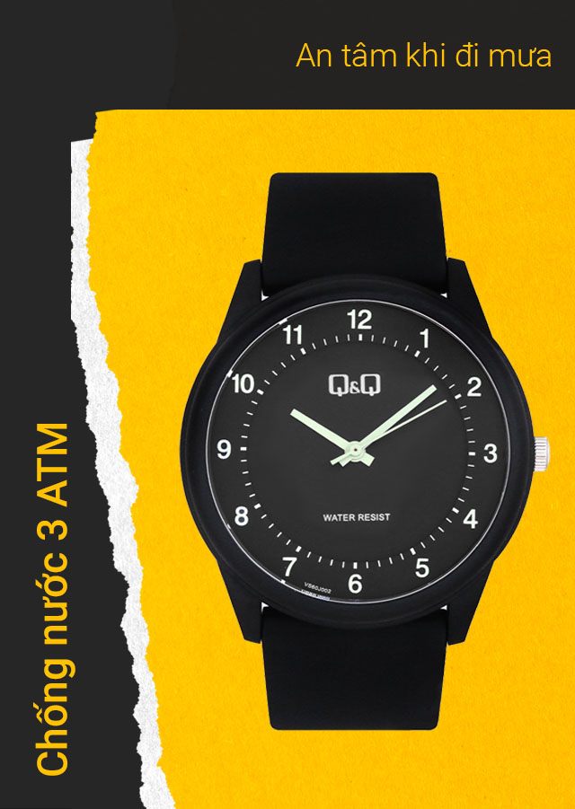 Đồng hồ Nam/Nữ Q&Q VS60J002Y cứng cáp, bền bỉĐồng hồ Nam/Nữ Q&Q VS60J002Y có hệ số chống nước 3 ATM