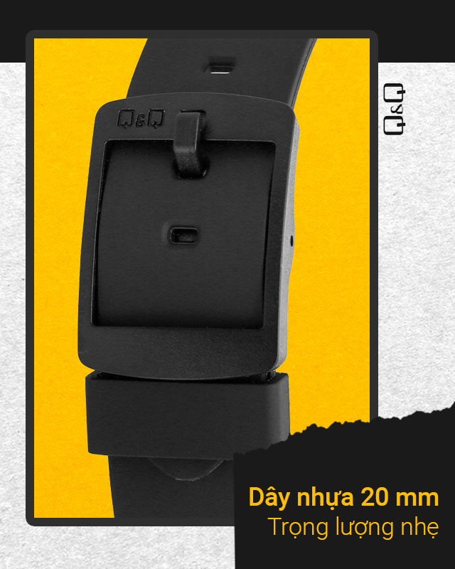 Dây đeo của mẫu đồng hồ Q&Q này bền đẹp, nhẹ nhàng, ôm tay tốt và chống thấm nước.