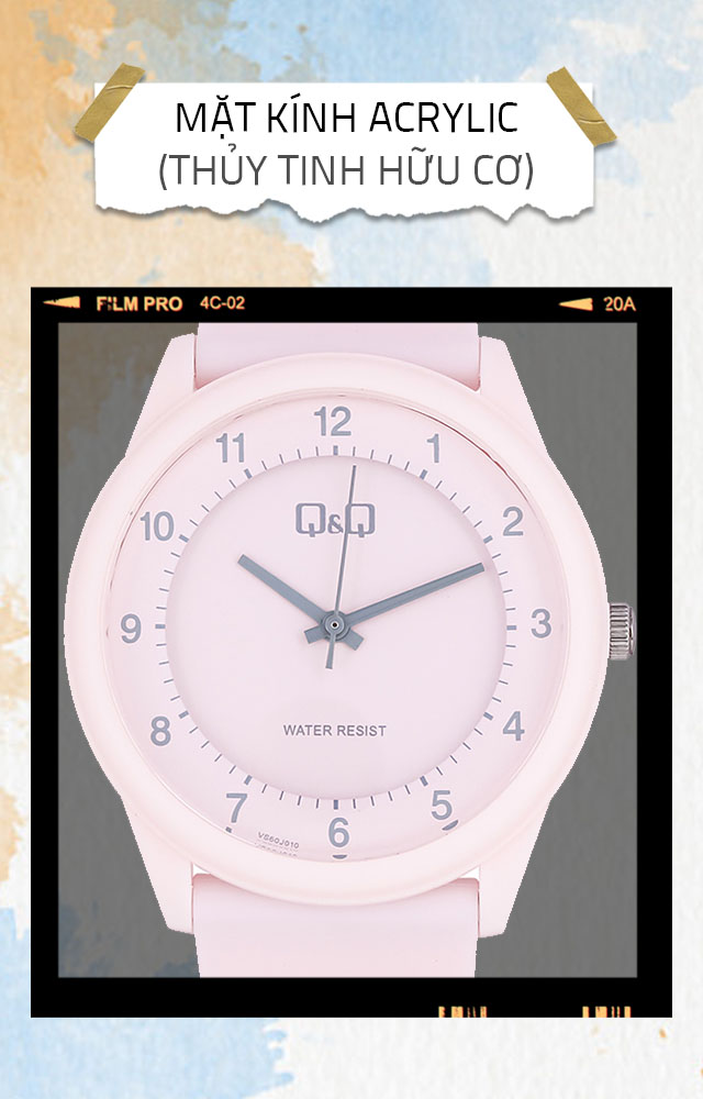 - Mặt kính của mẫu đồng hồ quartz này được làm bằng kính acrylic (thủy tinh hữu cơ).