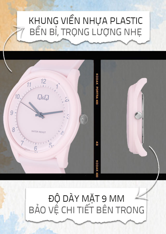 - Khung viền bằng nhựa plastic nên chiếc đồng hồ Q&Q nữ này có trọng lượng nhẹ, chắc chắn, ít hư hỏng khi rơi rớt ở độ cao vừa phải.