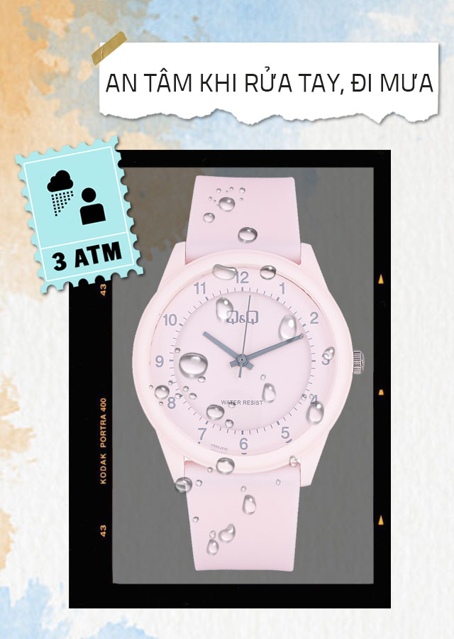 Thoải mái đeo mẫu đồng hồ kim này khi rửa tay, đi mưa vì có hệ số chống nước là 3 ATM. Lưu ý: không mang đồng hồ khi bơi, tắm.