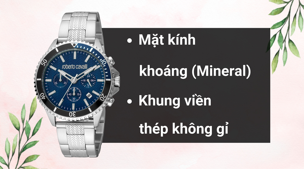 • Đồng hồ Roberto Cavalli này có đường kính mặt 42 mm phù hợp với các chàng trai có cổ tay vừa. Thương hiệu đã dùng chất liệu kính khoáng cho phần mặt kính, có thể chống va đập tốt. Hơn hết nhờ khả năng dễ đánh bóng bề mặt kính khi bị trầy xước nhẹ, chiếc phụ kiện sẽ thích hợp diện mọi lúc mọi nơi.