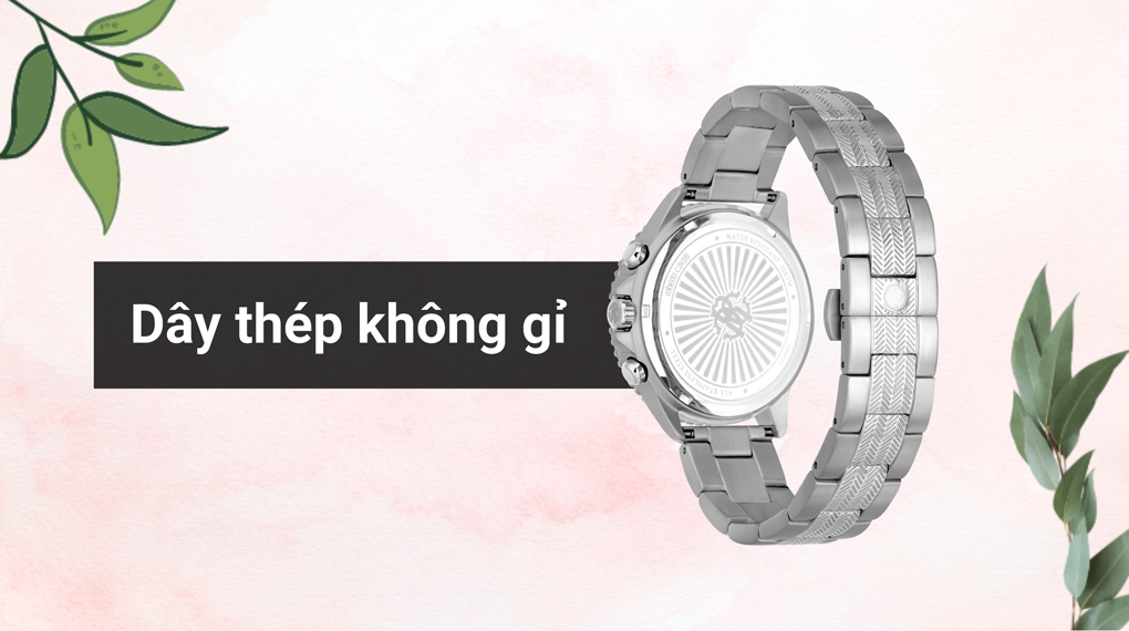 • Thương hiệu đã trang bị cho phần khung viền và dây đeo của mẫu đồng hồ nam này bằng chất liệu thép không gỉ, chất liệu có khả năng hạn chế ăn mòn cao trước tác động từ môi trường mang lại sự sang trọng và bền bỉ theo năm tháng cho người dùng.