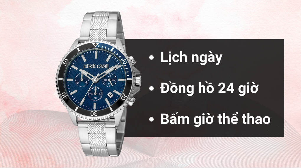 • Đồng hồ Roberto Cavalli 42 mm Nam RC5G049M0065 được phái mạnh yêu thích với thiết kế rất nam tính, mạnh mẽ. Mặt đồng hồ gợi nhớ đến bảng điều khiển của các xe đua bao gồm 6 kim và mặt phụ hình tròn, hỗ trợ bạn đo thời gian chính xác trong các hoạt động thể thao cùng họa tiết mũi tên được khắc ẩn trên phần mặt như những khát vọng tiến lên và những định hướng cho sự phát triển.