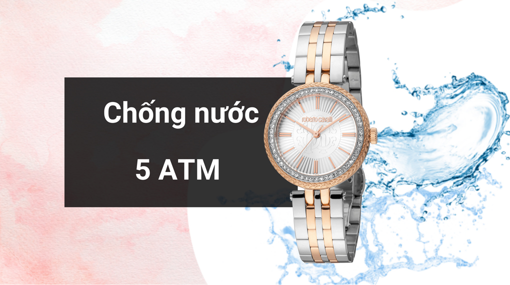 • Độ kháng nước 5 ATM trên đồng hồ cho biết khả năng chịu nước của nó, vì thế các chị em có thể đeo mẫu phụ kiện này thường xuyên kể cả khi rửa tay, đi tắm. Lưu ý: không đeo khi đi bơi, lặn.