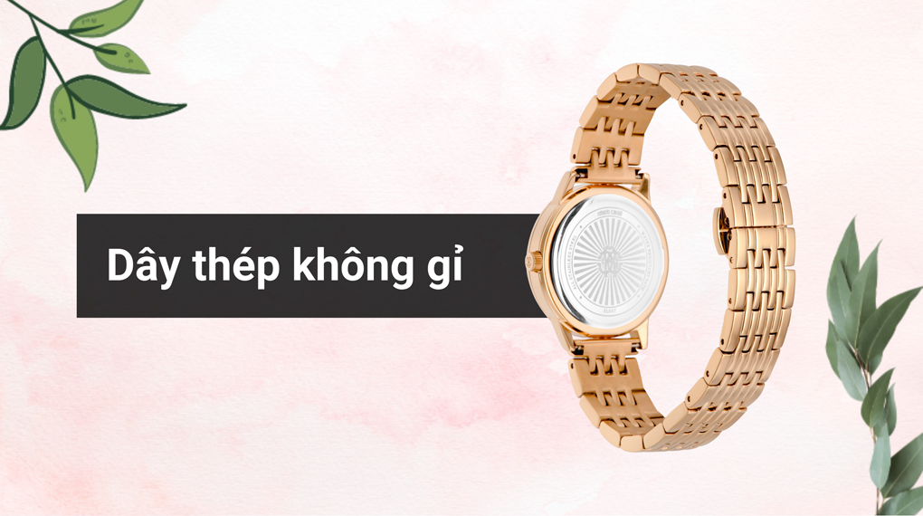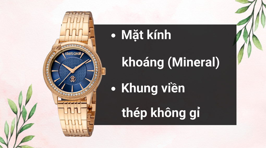 • Tổng thể của mẫu đồng hồ Roberto Cavalli này sang trọng từ chất liệu đến thiết kế khi phần khung viền và dây đeo được chế tác từ thép không gỉ, vật liệu với đặc tính bền bỉ giúp hỗ trợ khả năng chống chịu va đập cũng như hạn chế ăn mòn khá tốt giúp bạn an tâm khi sử dụng.