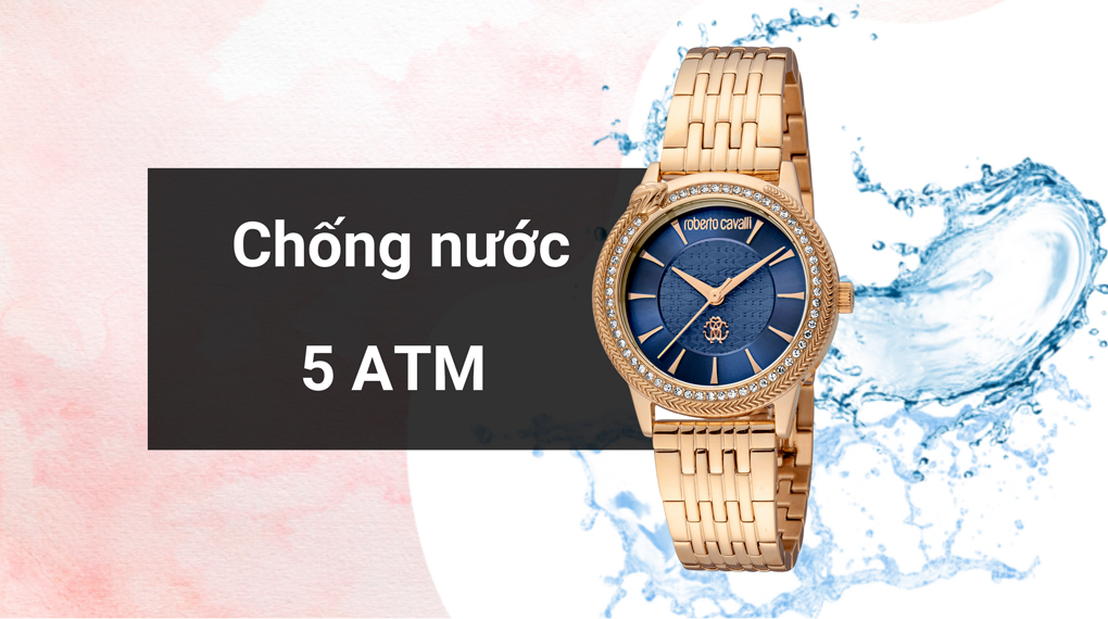 • Đồng hồ nữ này cũng được trang bị hệ số chống nước 5 ATM, cho phép bạn sử dụng trong các hoạt động hàng ngày như rửa tay, đi tắm và thể thao nhẹ. Lưu ý: không đeo sản phẩm khi bơi hoặc lặn.