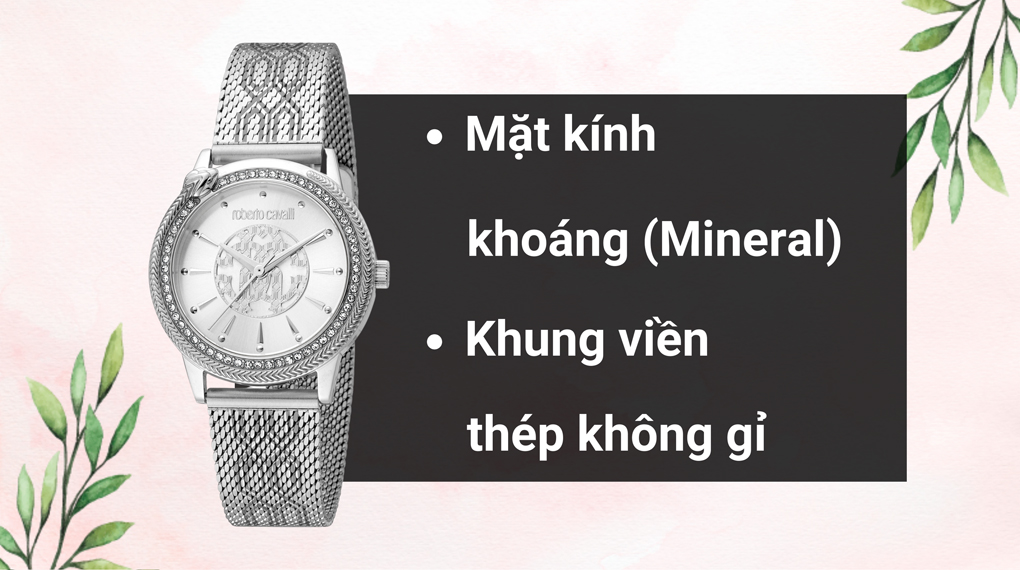 • Phần khung viền và dây đeo của đồng hồ Roberto Cavalli được làm bằng thép không gỉ, bền và chống chịu va đập cũng như ăn mòn tốt. Thiết kế khung viền giống như những chiếc vảy rắn độc đáo, mang lại năng lượng tích cực và may mắn cho người sử dụng.