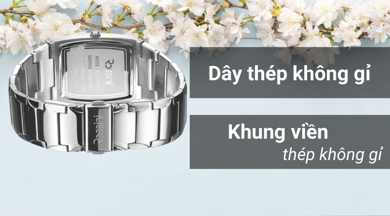 - Chất liệu của khung viền và dây đeo đều được làm từ thép không gỉ. Thép không gỉ là chất liệu có độ bền khá cao, khả năng chống ăn mòn, oxi hoá, chịu được mọi thời tiết.