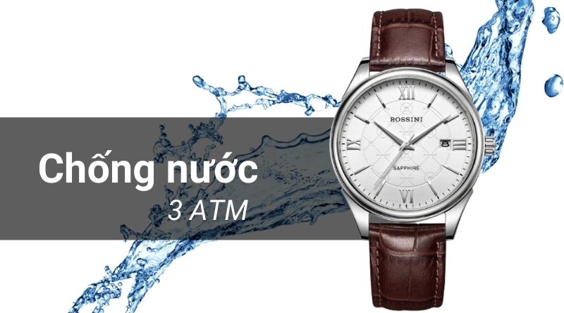 - Hệ số kháng nước của mẫu đồng hồ nam này là 3 ATM, có thể đi mưa và rửa tay. Lưu ý không sử dụng khi đi tắm, đi bơi, lặn.