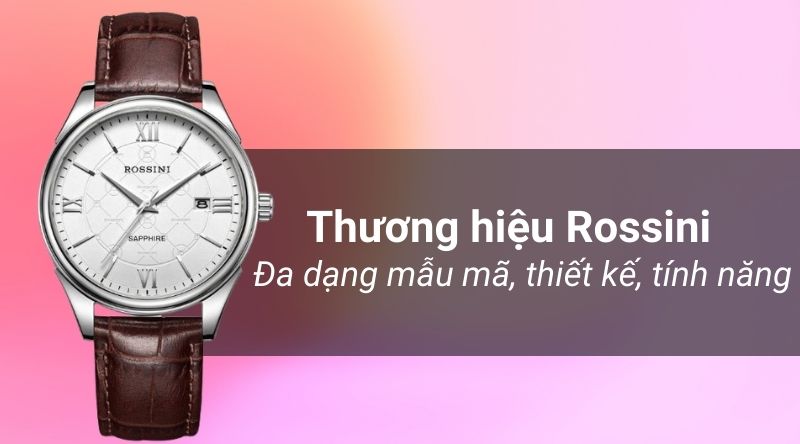- Sản phẩm này của hãng đồng hồ Rossini, hãng đồng hồ với những sản phẩm có mức giá hợp lí nhưng vẫn đảm bảo được chất lượng cũng như sự đa dạng về thiết kế, mẫu mã, tính năng phù hợp với đại đa số nhu cầu của người dùng.