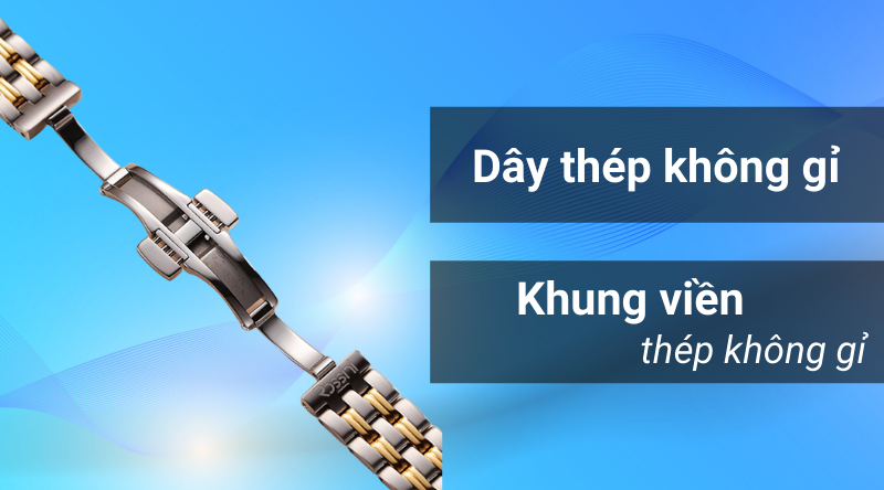 - Chất liệu của khung viền và dây đeo đều được làm từ thép không gỉ, chất liệu này có độ cứng cao, có khả năng chống ăn mòn tốt, chống oxi hoá, chống chịu mọi thời tiết. Vì vậy, khung viền và dây đeo có độ bền bỉ khá cao với thời gian.