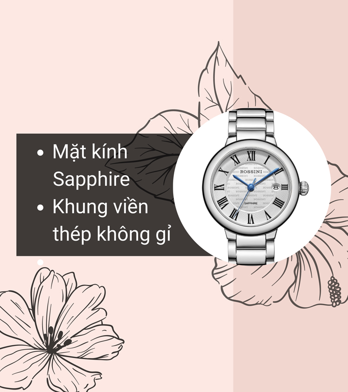 • Thép không gỉ là chất liệu được sử dụng để sản xuất khung viền và dây đeo của cặp đồng hồ Rossini này vì khả năng hạn chế trầy xước và độ bền cao. Ngoài ra, vật liệu này có độ sáng bóng giúp cho sản phẩm luôn sang trọng và mới mẻ.