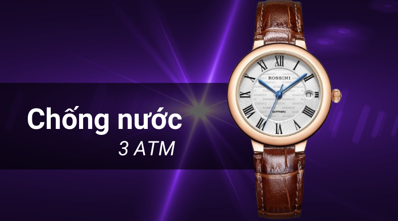 - 3 ATM là hệ số kháng nước của đồng hồ này có thể đi mưa, rửa tay. Lưu ý không sử dụng khi đi tắm, đi bơi, lặn.