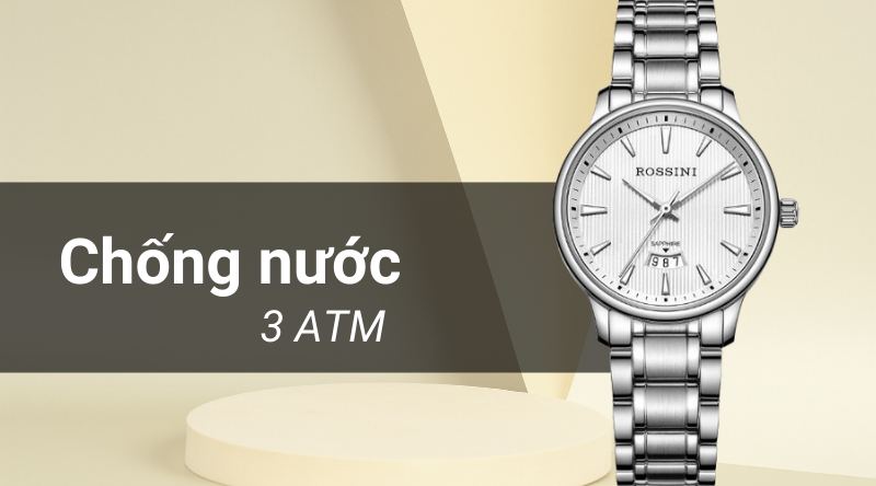 - 3 ATM là hệ số kháng nước của mẫu đồng hồ nữ này, có thể đi mưa, rửa tay. Lưu ý không sử dụng khi đi tắm, đi bơi, lặn.