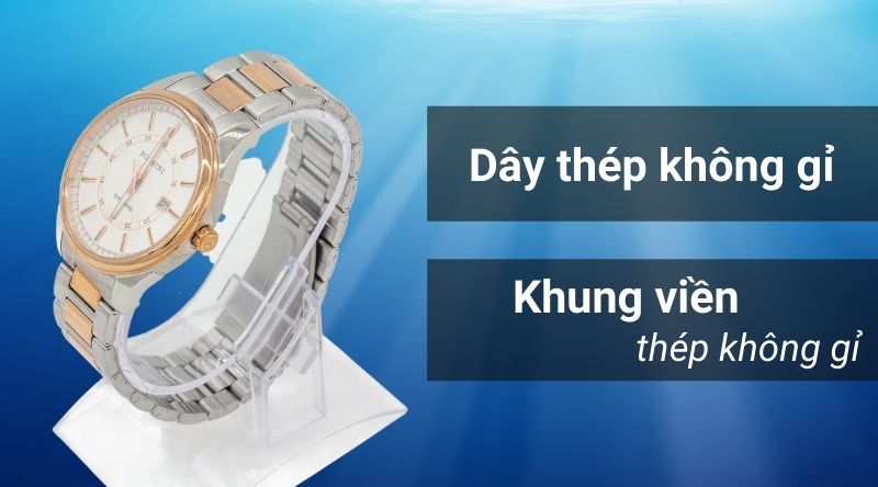 - Khung viền và dây đeo đều được làm từ thép không gỉ. Chất liệu này có độ cứng cao, bền bỉ, có khả năng chống ăn mòn tốt, chống oxi hoá, chống chịu mọi thời tiết.