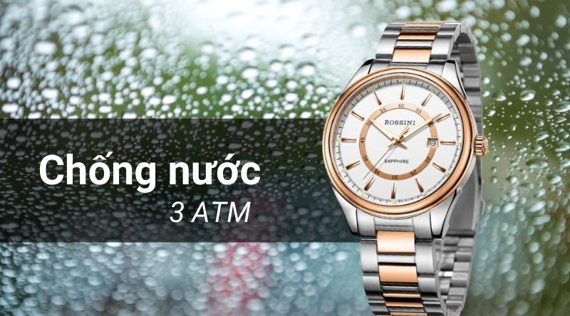 - Hệ số kháng nước của mẫu đồng hồ nam này là 3 ATM, có thể đi mưa và rửa tay. Lưu ý không sử dụng khi đi tắm, đi bơi, lặn.
