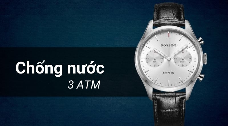 - Hệ số kháng nước của mẫu đồng hồ nam này là 3 ATM, có thể đi mưa và rửa tay. Lưu ý không sử dụng khi đi tắm, đi bơi, lặn.