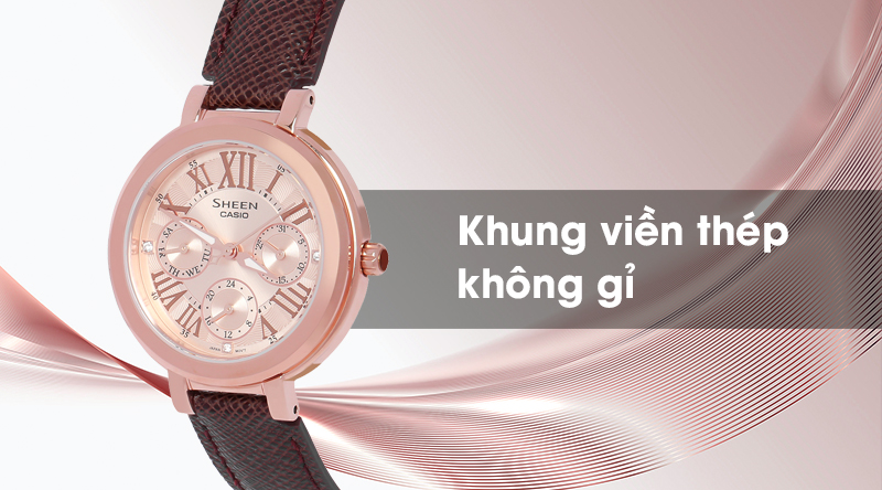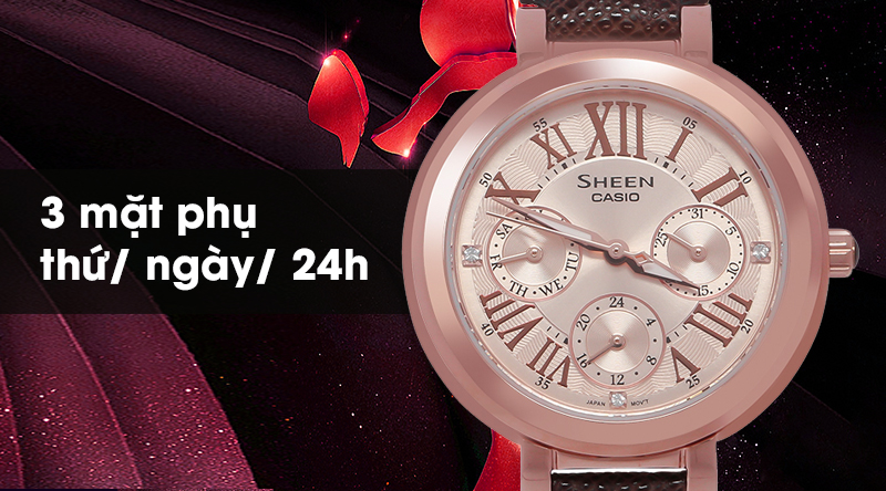 - Sheen Casio là một dòng của đồng hồ Casio, sở hữu thiết kế đẹp mắt, sang trọng, với các họa tiết cầu kì, sự kết hợp hài hòa giữa phong cách cổ điển với hiện đại đã giúp cho đồng hồ Casio Sheen chiếm được cảm tình của rất nhiều chị em phái đẹp.