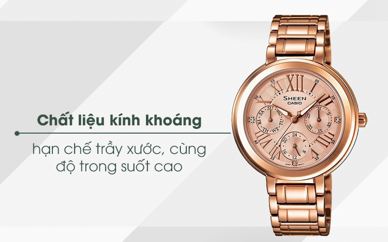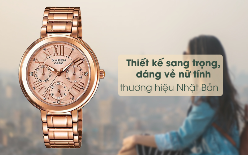 - Sheen Casio là một dòng của đồng hồ Casio, sở hữu thiết kế đẹp mắt, sang trọng, với các họa tiết cầu kì, sự kết hợp hài hòa giữa phong cách cổ điển với hiện đại đã giúp cho đồng hồ Casio Sheen chiếm được cảm tình của rất nhiều chị em phái đẹp.