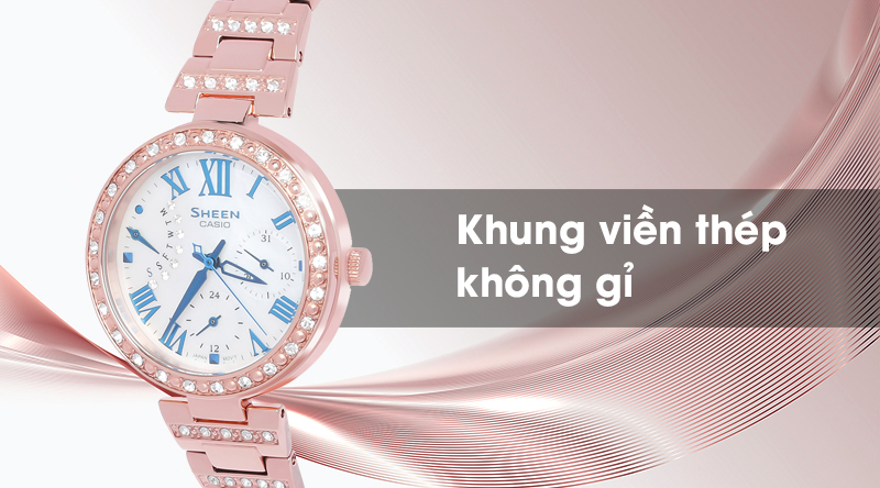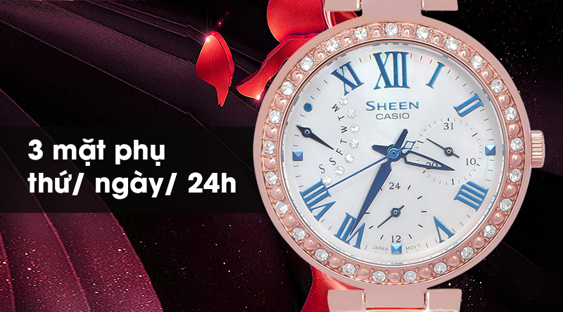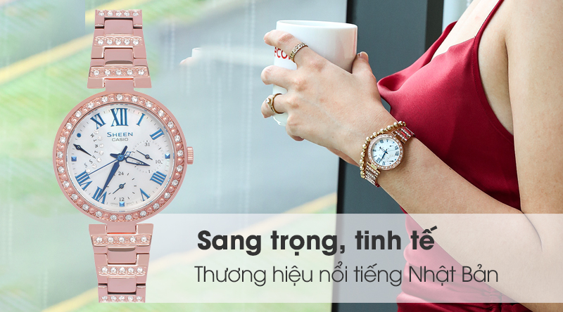 - Sheen Casio là một dòng của đồng hồ Casio, sở hữu thiết kế đẹp mắt, sang trọng, với các họa tiết cầu kì, sự kết hợp hài hòa giữa phong cách cổ điển với hiện đại đã giúp cho đồng hồ Casio Sheen chiếm được cảm tình của rất nhiều chị em phái đẹp.