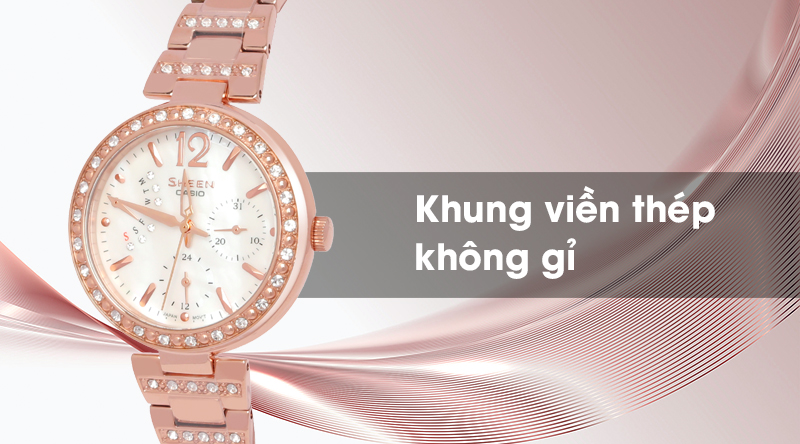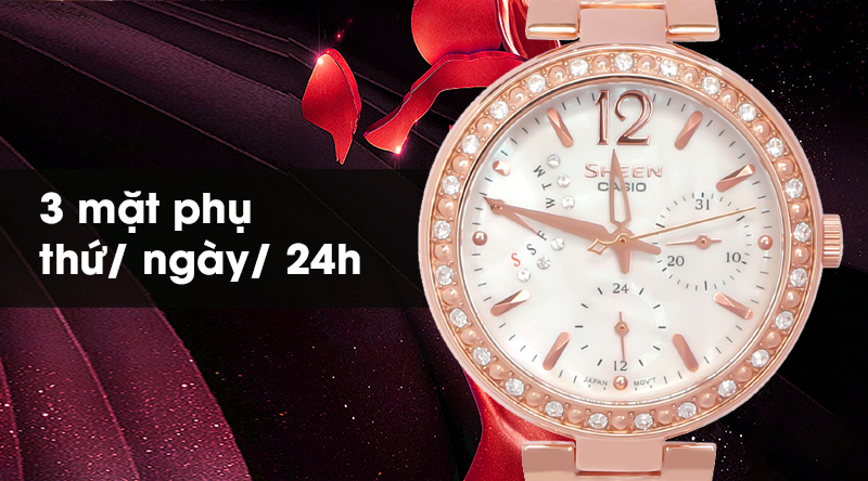 - Sheen Casio là một dòng của đồng hồ Casio, sở hữu thiết kế đẹp mắt, sang trọng, với các họa tiết cầu kì, sự kết hợp hài hòa giữa phong cách cổ điển với hiện đại đã giúp cho đồng hồ Casio Sheen chiếm được cảm tình của rất nhiều chị em phái đẹp.