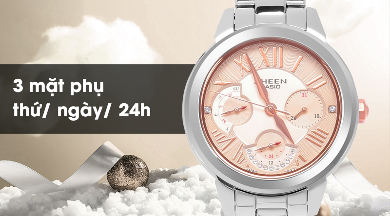 Mang thương hiệu đồng hồ Sheen Casio của Nhật Bản, đồng hồ nữ này giúp bạn nữ thể hiện được vẻ đẹp riêng của mình.