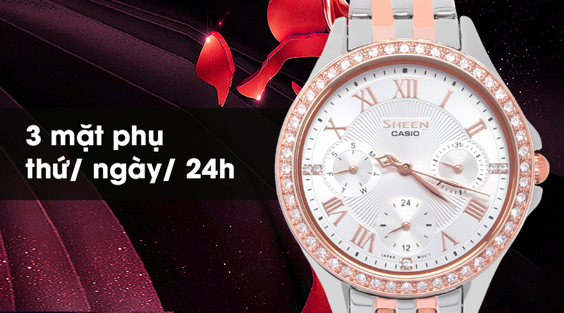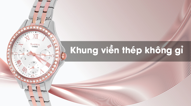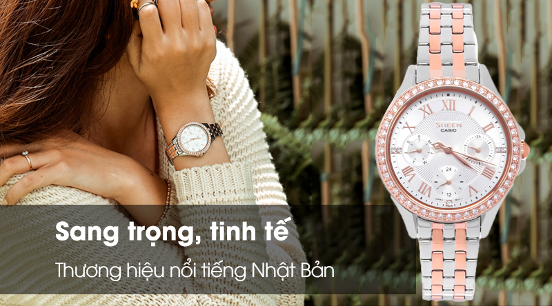 - Sheen Casio là một dòng của đồng hồ Casio, sở hữu thiết kế đẹp mắt, sang trọng, với các họa tiết cầu kì, sự kết hợp hài hòa giữa phong cách cổ điển với hiện đại đã giúp cho đồng hồ Casio Sheen chiếm được cảm tình của rất nhiều chị em phái đẹp.