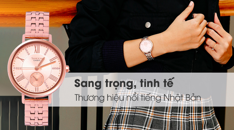 - Sheen Casio là một dòng của đồng hồ Casio, sở hữu thiết kế đẹp mắt, sang trọng, với các họa tiết cầu kì, sự kết hợp hài hòa giữa phong cách cổ điển với hiện đại đã giúp cho đồng hồ Casio Sheen chiếm được cảm tình của rất nhiều chị em phái đẹp.