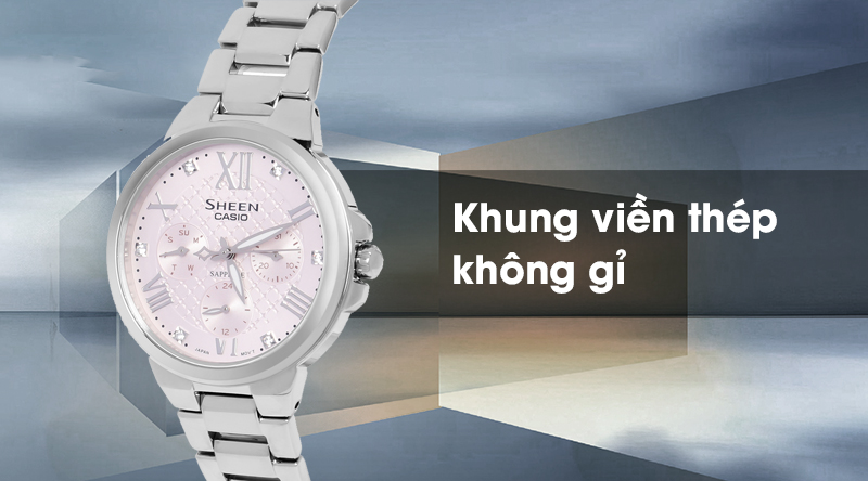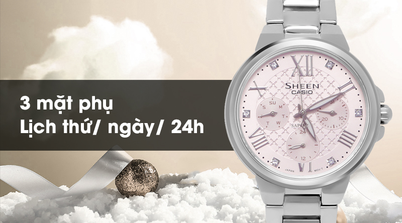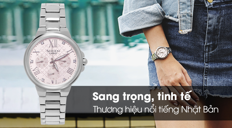 - Sheen Casio là một dòng của đồng hồ Casio, sở hữu thiết kế đẹp mắt, sang trọng, với các họa tiết cầu kì, sự kết hợp hài hòa giữa phong cách cổ điển với hiện đại đã giúp cho đồng hồ Casio Sheen chiếm được cảm tình của rất nhiều chị em phái đẹp.