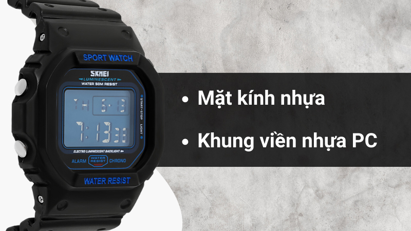 - Dây nhựa nhẹ nhàng, dễ chịu khi đeo, khung viền nhựa PC cứng cáp, chịu va đập hiệu quả, bảo vệ an toàn các chi tiết bên trong