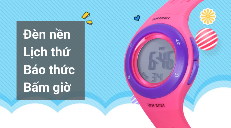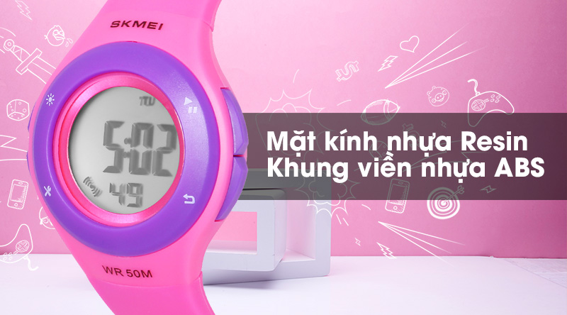 - Khung viền mẫu đồng hồ Skmei trẻ em này chắc chắn, trọng lượng nhẹ, hạn chế hư hỏng khi rơi rớt ở độ cao vừa phải.
