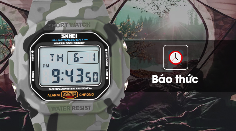 Đồng hồ Nam Skmei SK-1471 - Xanh Camo có chế độ báo thức hàng ngày