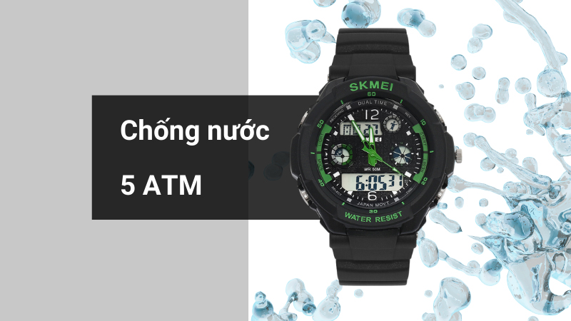 • Đồng hồ kim - điện tử có khả năng chống nước của đồng hồ là 5 ATM cho phép đeo khi tắm, đi mưa, rửa tay, không để bé mang khi bơi hay vui chơi thể thao dưới nước.