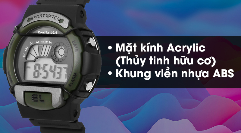 - Mặt kính của chiếc đồng hồ điện tử này trong suốt, độ cứng cao, ít lóa dưới ánh sáng mạnh, dễ đánh bóng và thay mới.