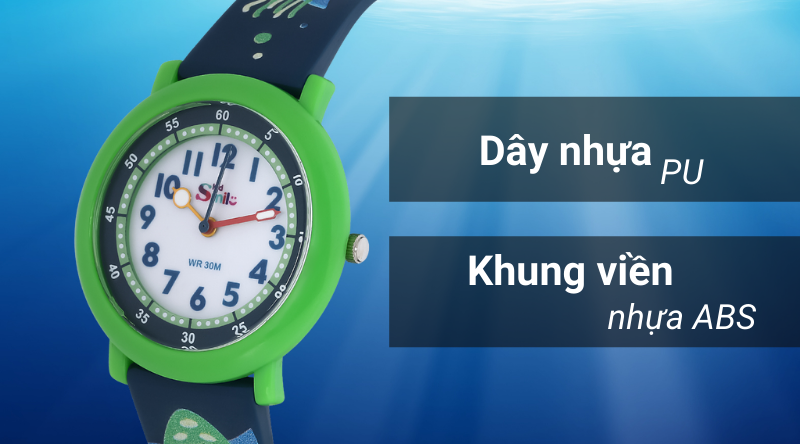 - Đồng hồ Smile Kid được trang bị khung viền làm từ nhựa ABS và dây đeo cũng được làm từ chất liệu nhựa không chỉ đem đến độ bền tối ưu, mà còn mang lại cảm giác thoải mái khi đeo.